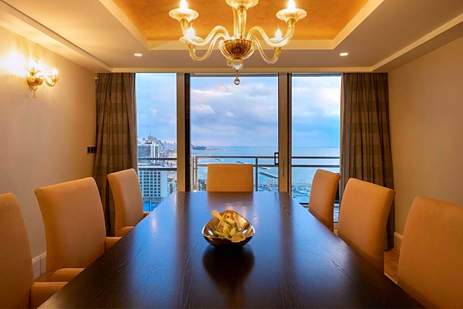 The spacious air-conditioned suite provides a flat-screen TV with cable channels, a mini-bar, a tea and coffee maker, a seating area as well as sea views. The unit offers 1 bed.